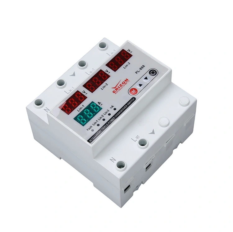 Tento 3-fázový napäťový chránič so štyrmi displejmi obsahuje prepätie, podpätie a nadprúd. Použitie špeciálneho meracieho čipu zaisťuje, že chyba merania elektrických parametrov, ako je výkon a spotreba energie, je v rozmedzí ±1 %. Je vybavený dvojitým LCD displejom pre monitorovanie v reálnom čase, hodnoty prúdu a napätia. A môže tiež prispôsobiť prahovú hodnotu prepätia/podpätia, hodnotu nadprúdu a čas oneskorenia akcie tak, aby vyhovovali aplikačným požiadavkám rôznych scenárov.