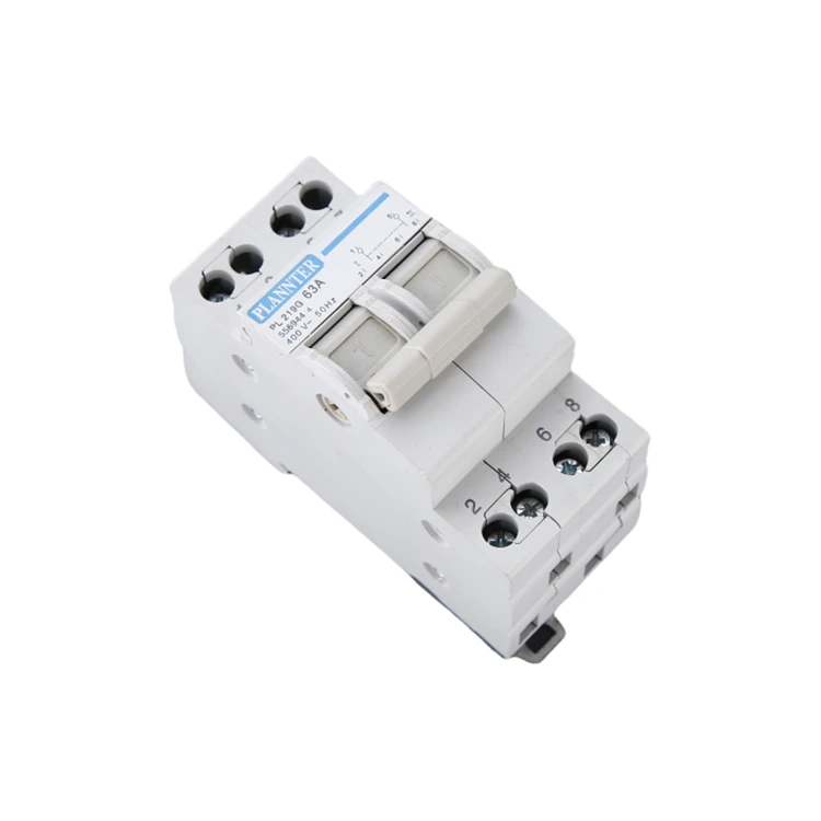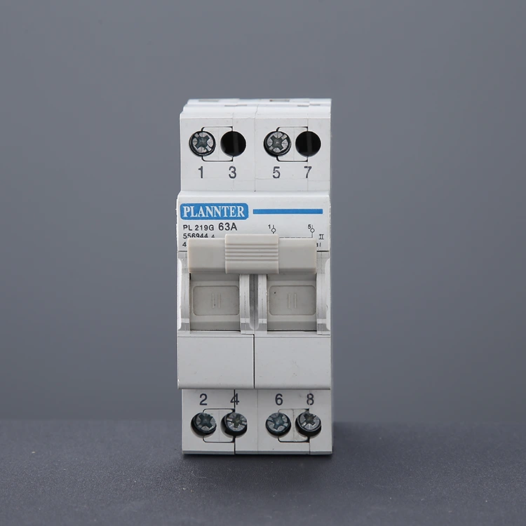 Tento prepínač bol navrhnutý pre AC 50Hz/60Hz systémy s menovitým napätím 230V až 400V a je namontovaný na DIN lištu pre jednoduchú integráciu do štandardných rozvodných boxov. Zabezpečuje, že pri výpadku spoločného napájania je možné systém manuálne prepnúť na záložný generátor alebo sekundárne napájanie, čím sa zachová spoľahlivosť pre citlivé zariadenia.